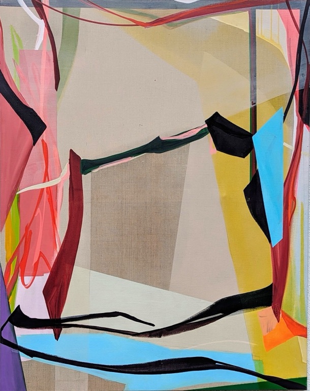 Die Werke von Bettina Zapp sind nicht Malerei im klassischen Sinne. Ihre Kunst besteht vielmehr aus Momentaufnahmen von im Raum verwobenen Dialogen, deren Inhalt sich nicht aus Buchstaben oder Sätzen, sondern aus Form, Struktur, Rhythmus und Farbe zusammen setzen. Dabei zerreißt, zerpflückt, sprenkelt sie ihre gemalten Inhalte in Fragmente und verteilt diese pointiert und mit messerscharfer Linienführung über die Leinwand. Gemaltes Drama voller Emotionen.