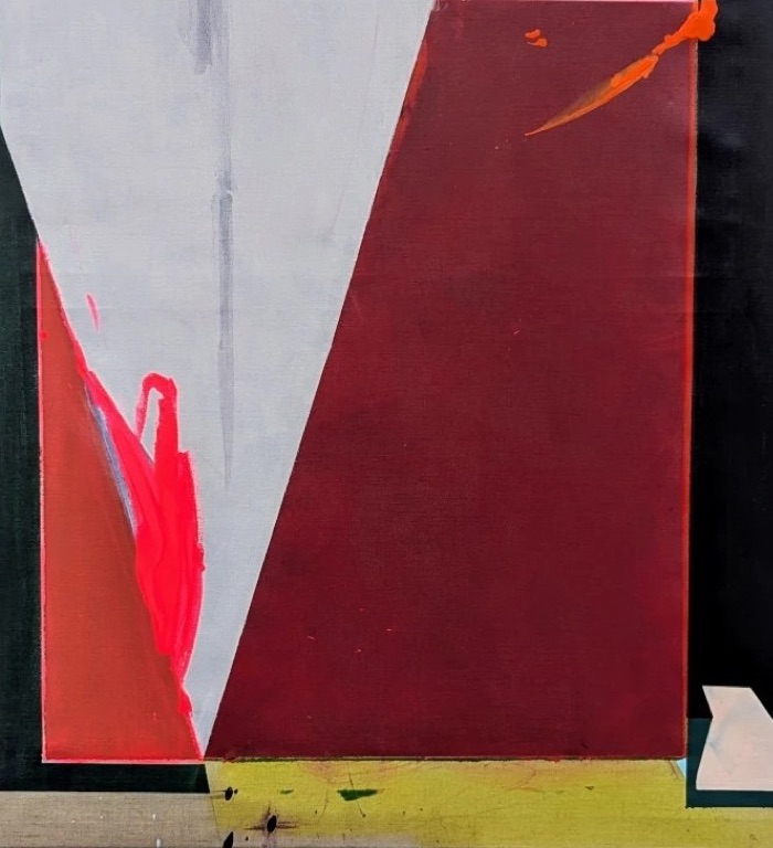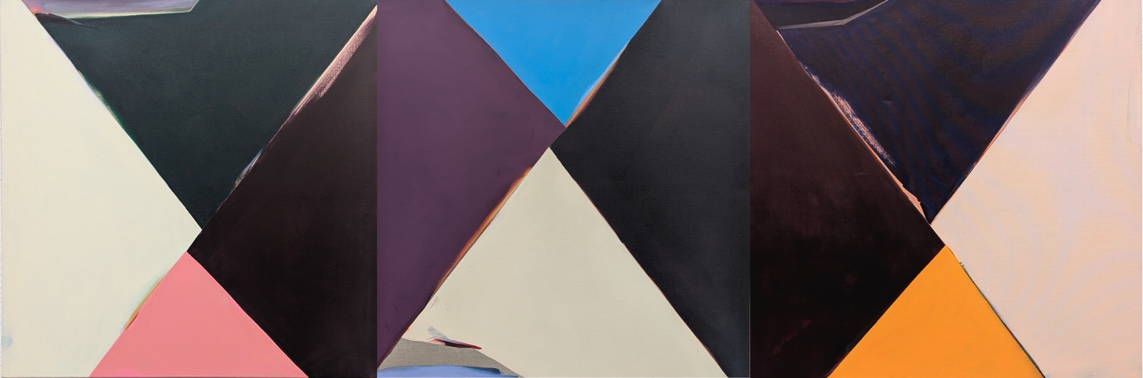 Mit ihrer neuesten Werkphase hat Bettina Zapp eine konsequent radikale Flächenmalerei erschaffen, die ohne klassische Freiräume auskommt und dennoch ein komplexes Raumgefüge eröffnet. Die streng aneinander gereihten geometrischen Formen wirken wie ein Bühnenbild, das sich in ständiger Bewegung zu befinden scheint. Besonders an den Randzonen der Formen entsteht ein faszinierender Eindruck: Farbblitze, wie Energieimpulse lassen eine latente Dynamik erahnen, die hinter den scharf konturierten Kanten aufscheint. Es ist diese hinter den Flächen lauernde Spannung, die Raum und Zeit geradezu greifbar macht. Zapps Malerei offenbart hier eine Tiefe, die den Betrachter in eine Welt jenseits der sichtbaren Oberfläche führt. Zugleich liegt in der Radikalität der Farbsetzung – in der präzisen Abstimmung von leuchtenden Tönen und subtilen Halbtönen – eine außergewöhnliche Leichtigkeit. Was die Künstlerin hier geschaffen hat, ist radikale Schönheit: eine neue kompromisslose Ästhetik, die nicht nur visuell beeindruckt, sondern auch intellektuell fordert – ein Spiel zwischen Ordnung und Energie, zwischen Struktur und dem freien Fluss der Imagination.